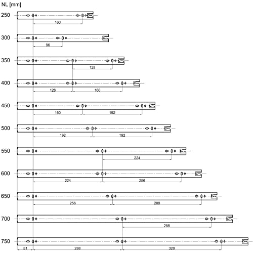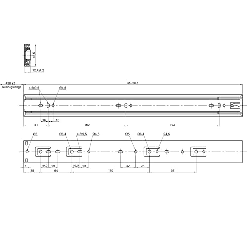 Dimensioni: Lunghezza nominale: 450 mm / Altezza di installazione: 45 mm / Larghezza di installazione: 12,7 mm