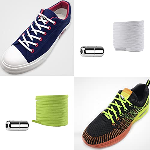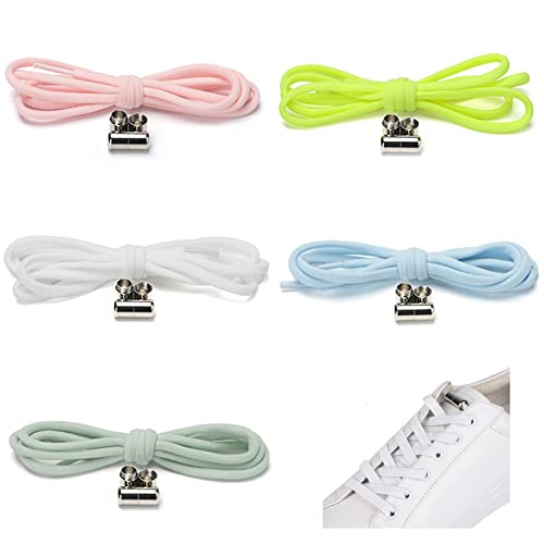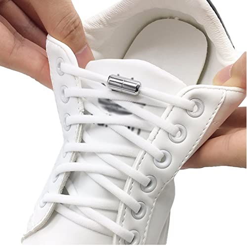 5 Paia Lacci Elastici con Chiusura in Metallo Lacci Facili E Resistenti Sistema di Allacciatura Veloce Lacci Autobloccanti Bianchi per Scarpe da Fitness, Scarpe Sportive, Scarpe da Jogging