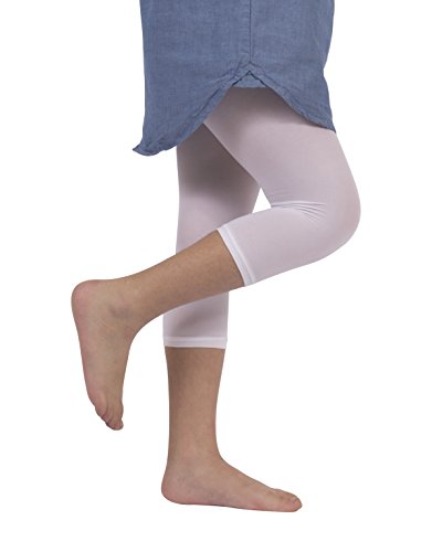 2 PAIA - LEGGINGS CORTI BAMBINA IN MICROFIBRA | CAPRI BIMBA | 40 DEN | BIANCO, NERO | CALZETTERIA ITALIANA | (4/6 Anni, 2 PAIA - BIANCO)