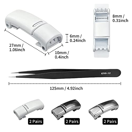 6 Paia di Metallo No-Tie Lacci Fibbia Clip di Blocco Pigro Accessorio Fibbia Magnetica per Scarpe, per Bambini Sneakers per Adulti Scarpe Casual Collana Bracciale, con Pinzette (Bianco, Argento, Nero)