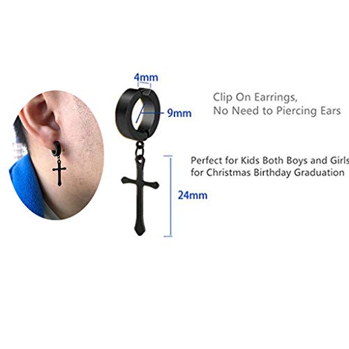 4 Paia Non-piercing Orecchini Orecchio Clip Unisex Croce Religione Pendente Croce Orecchini a Cerchio Acciaio Incisione Uomo Donna