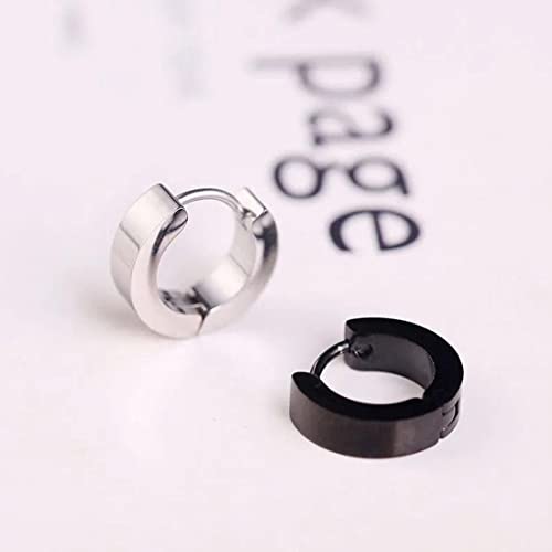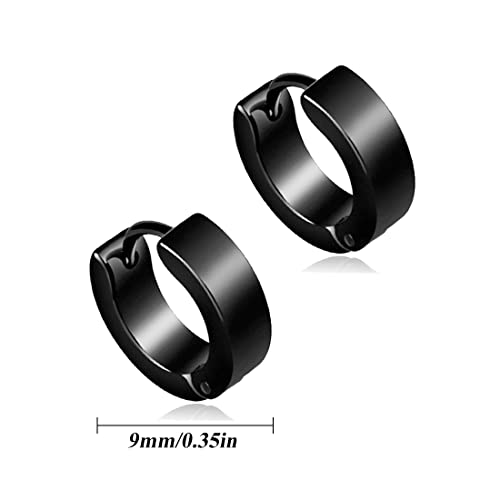 2 Paia Orecchini in acciaio inossidabile nero argento da uomo donna 9mm Orecchini a cerchio classici Orecchini a Cerchio, Orecchini da Uomo Donna, Acciaio Inossidabile