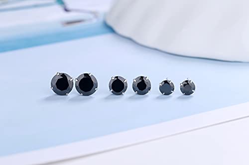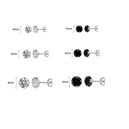 Bo Win 6 Paia Orecchini in Argento 925 Orecchino Set Donna Orecchini Argento Orecchini Nero Orecchini Uomo Diamanti 4mm 5mm 6mm con Zirconi Orecchini per Donna Uomo