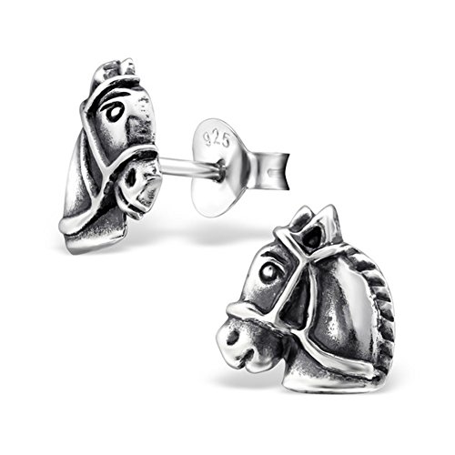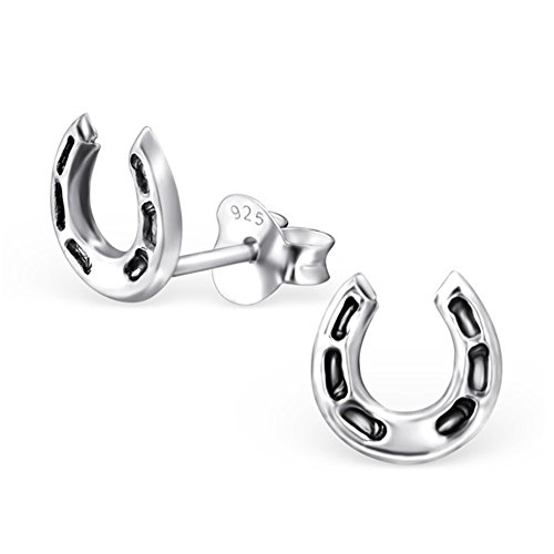 2 paia di orecchini da bambina, in argento 925, motivo: cavalli e ferri di cavallo, 8 mm.