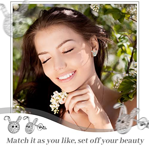 Contenuto della confezione: la confezione include 2 paia di orecchini in argento per bambini, 1 paio di graziosi orecchini a forma di coniglietto di diamanti e 1 paio di orecchini asimmetrici di pulcino e uovo, che possono soddisfare le tue esigenze di abbigliamento