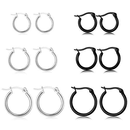 6 paia di orecchini a cerchio per donna orecchini a cerchio in oro argento piccoli orecchini a cerchio set orecchini ipoallergenici per donne ragazze (8MM-12MM)