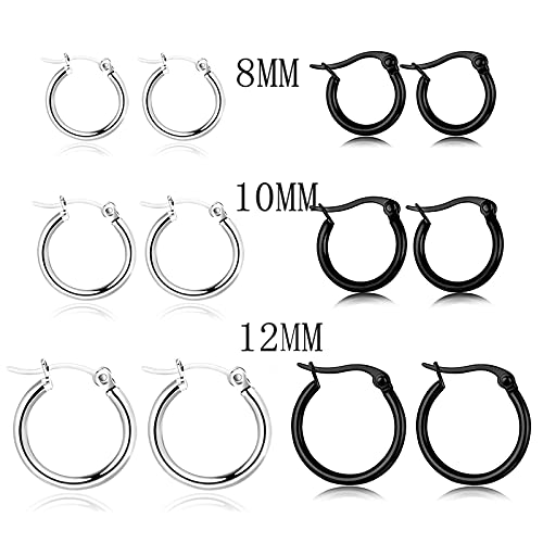 ✦Orecchini a cerchio in acciaio inossidabile in varie dimensioni✦ Orecchini a cerchio alla moda per donna con diametro 8 mm 10 mm 12 mm calibro 18G (1,0 mm) per l'uso quotidiano. Una confezione di orecchini a cerchio da donna può essere indossata da sola o in combinazione con altri orecchini. I piccoli orecchini a cerchio in argento sono molto leggeri, quindi ti dimenticherai della loro esistenza e li indosserai per dormire. cerchi