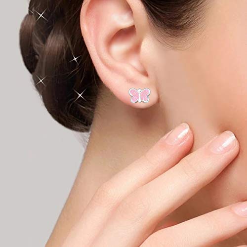 Set 3 paia di orecchini farfalla + cuore + unicorno Orecchini per ragazze realizzati in vero argento 925