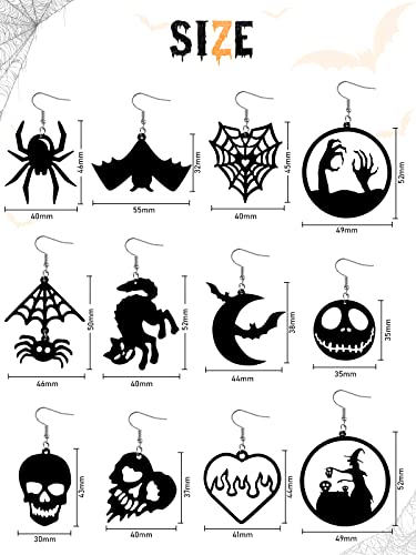 12 Paia Orecchini Pendenti di Halloween, Kalolary Orecchini Zucca Ragno Teschio Halloween Acrilico Nero Orecchini Goccia con Gancio Trafitto Donne Ragazze Halloween Party Dress Up Decorazione Gioielli