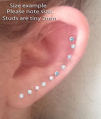 Set di 10 paia di orecchini a perno in vero argento Sterling con zirconia cubica, colori come da foto. Dimensioni: Piccoli, 2 mm, con confezione regalo.