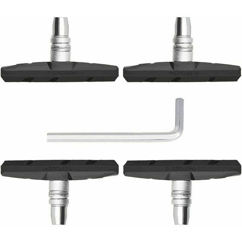 Eccellente design della frenata: le pastiglie dei freni della bicicletta a forma di V con il design leggermente curvo non danneggiano la ruota e forniscono una migliore potenza di frenata e meno rumore. Le esclusive scanalature di guida della sabbia prevengono efficacemente i danni da sabbia e pietre ai cerchioni. Alta qualità: queste pastiglie dei freni sono realizzate in gomma resistente e metallo, le pastiglie dei freni a V aiutano a fermare la bici nelle condizioni meteorologiche più avverse. Installazione semplice: ogni pastiglia del freno con contrassegno di testo per una facile installazione, leggere il contrassegno di testo sulle pastiglie dei freni prima dell'installazione, con la chiave esagonale viene fornita per una facile installazione e rimozione. Kit completo: 2 paia pastiglie freno V (4 pezzi), ogni pastiglia freno viene fornita con 5 distanziali e dado esagonale da 5 mm, ogni coppia è di ricambio sinistra e destra adatta per la maggior parte delle bici con freno a V.