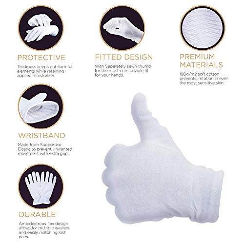 Alta qualità: 12 paia di guanti in cotone bianco (24 pezzi) sono realizzati in 100% cotone e privi di poliestere. Lunghezza 23 cm, adatti per la maggior parte degli adulti. I guanti sono traspiranti, leggeri, comodi, anche di notte o di lavoro. I guanti sono traspiranti, leggeri, comodi, anche di notte o di lavoro.