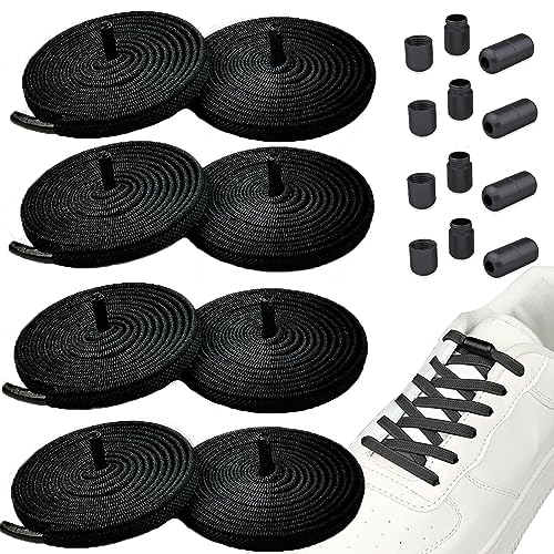 Informazioni di base: include 4 paia di lacci piatti elastici neri con 4 paia di capsule in alluminio, la lunghezza è di circa 105 cm / 41,3 pollici (± 5 cm/2 pollici), quantità sufficiente per coprire la tua sostituzione quotidiana.