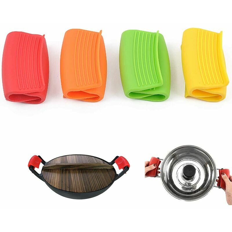 Puoi ottenere - 4 paia di clip auricolari in silicone antiscottatura. Compresi rosso, verde, giallo e arancione. I colori ricchi possono soddisfare le tue esigenze quotidiane. [Materiale Premium] Il supporto per manico caldo in silicone è realizzato in silicone alimentare di alta qualità, antiscivolo e resistente al calore, resiste a temperature da -104�F a 464� F (da -40 �C a 240�C). Sicuro da usare a lungo. [Facile da usare] Il coperchio del manico della pentola può essere annidato uno dentro l'altro per riporlo senza occupare spazio in cucina. È anche molto facile da pulire. questo materiale è resistente e non si strappa facilmente. Può essere lavato in lavastoviglie o risciacquato rapidamente a mano. [Ampia applicazione] Adatto per padelle in ghisa, padelle, piastre, griglie, ecc., Perfetto per l'uso con forno, microonde o congelatore. Sicuro da usare in qualsiasi situazione in cucina. [Garanzia di soddisfazione al 100%] Non deluderemo mai i nostri clienti. Se hai commenti, ti