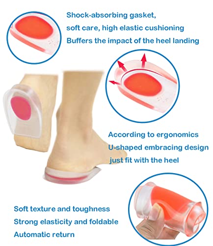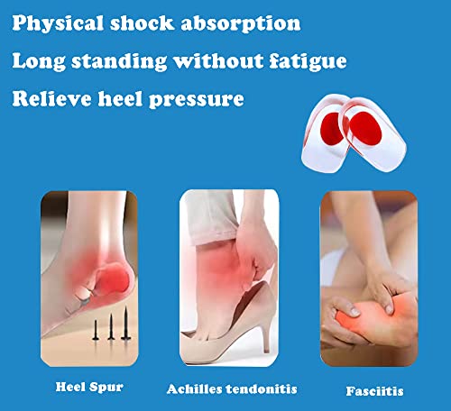 2 paia di talloni in silicone, cuscinetti in silicone gel per uomini e donne per fascite plantare, Sperone osseo, dolore al tallone, dolore al tendine d'Achille e cura dei piedi (rosso33-39)