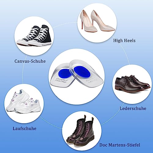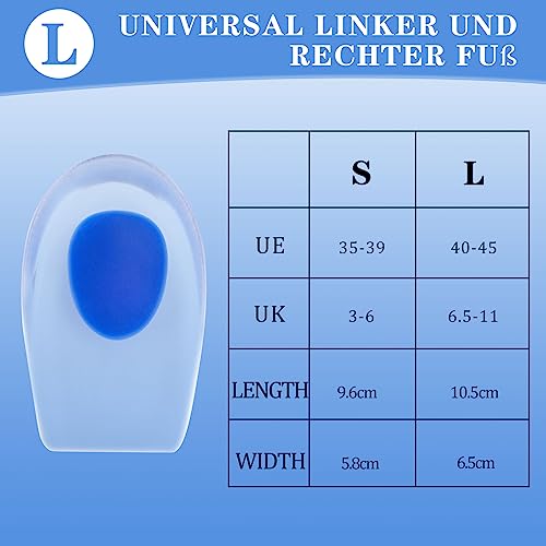 【Materiali di Alta Qualità】: Questi cuscinetti per talloni sono realizzati in silicone di alta qualità, morbidi e molto confortevoli. Offrono un sostegno delicato al tallone, riducendo efficacemente la fatica e la pressione ai piedi.