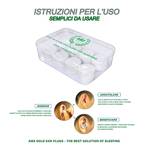 ✅ MORBIDI e CONFORTEVOLI - I tappi per orecchie antirumore AMZ GOLD sono realizzati in SILICONE di Alta Qualità ipoallergenico. Lavabili, riutilizzabili, pratici e sicuri sono la soluzione ideale per creare una barriera fisica tra il timpano e tutti i rumori esterni. I tappi auricolari antirussamento Amz, comodi da indossare, garantiscono massima protezione per un miglior sonno notturno.