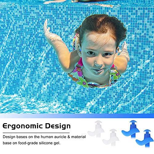 4 Paia Tappi per Orecchie da Nuoto Tappi per Orecchie in Silicone da Nuoto Riutilizzabili Impermeabili per Nuotare Doccia Bagno Surfing Snorkeling e Altri Sport Acquatici (Bianco e Blu)