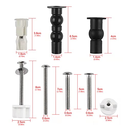 Dimensioni: viti per sedile WC universali, 14-18 mm, foro per sedile WC, si adatta alla maggior parte dei sedili WC standard con cerniera superiore. Si prega di rimuovere le vecchie viti e confrontare le dimensioni con il nuovo set di cerniere di ricambio prima dell'acquisto