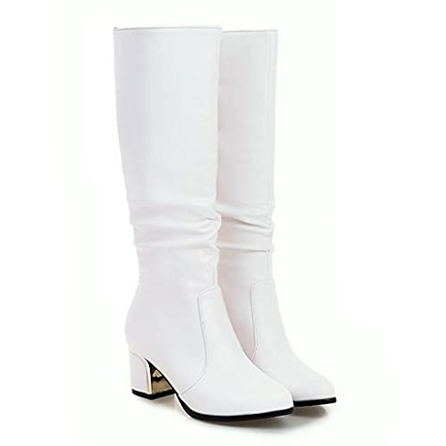 PAIDAXING Stivali da equitazione da donna al ginocchio in finta pelle con tacco a blocchi invernali, lunghezza al ginocchio, alla moda, taglia 3,5 - 7,5, bianco, 36.5 EU