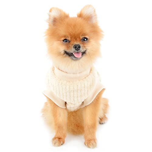 PAIDEFUL Peluche Cane Caldo Maglione Chihuahua Maglioni Moda Tinta Unita Caldo Maglieria Pullover Abbigliamento Invernale per Cucciolo Piccoli Animali Gatto Autunno Freddo Indossando Beige XXL