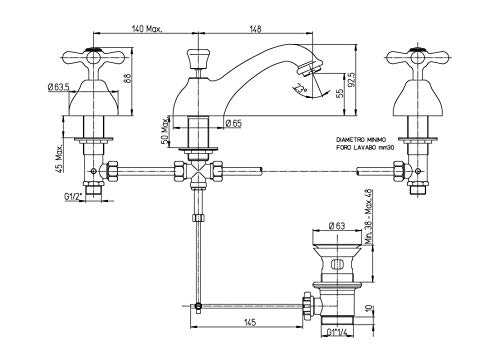 ✅ Rubinetto Lavabo 3 Fori con Scarico Automatico 1"1/4