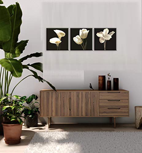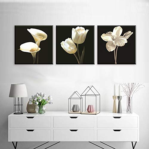 PIY PAINTING Stampe su Canvas Fiore Tulipano Bianco Calla Lily Immagine Quadro su Tela Pittura con Cornice Moderni Murale Fotografia Grafica para Sala Regalo di Anniversario Natale 3X 30x30cm