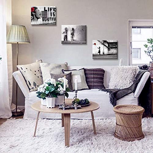 Piy Painting Stampe e Quadri su Tela Graffiti La Vita è Bella Ragazza con Palloncino Rosso Decorazione Murale Tela Wall Art Bel Regalo per Home Decor Regalo di Anniversario Compleanno 3X 30x40cm