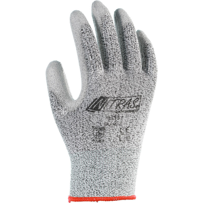 6315. Guanto antitaglio dal comfort eccellente. Rivestimento parziale grigio in PU per una buona presa in ambienti asciutti e leggermente umidi. Non adatto per componenti oleosi. Norma: EN 388;