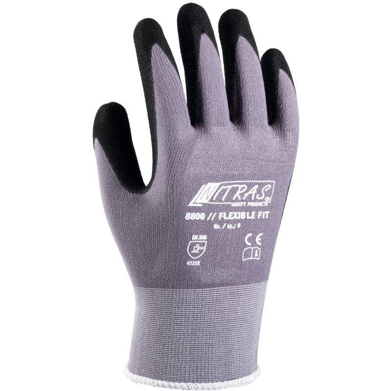 8800 FLEXIBLE FIT. Guanto antiscivolo con rivestimento in schiuma di nitrile su tessuto a maglia stretch speciale per garantire un maggiore comfort. Adatto per ambienti di lavoro umidi e leggermente oleosi. Norma: EN 388;