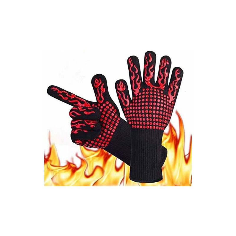 PROTEZIONE MASSIMA - Garantisco per barbecue certificatei offro la massima protezione dal calore fino a 800 ℃ (1472°F) per 10 secondi, molto più sicuri di 500°C (932°F) di altri GUANTI sul mercato. Guanti in silicone a doppia faccia sono antiscivolo, permettendoti di maneggiare facilmente posate o altri oggetti per stabilità e pieno controllo di pinze, utensili e altri utensili da cucina. essere lavati in lavatrice. utilizzato nei lavori di stampaggio.I guanti da forno sono un buon aiuto in cucina o barbecue, guanti da forno perfettamente isolati, protezione ottimale! 【Regalo】 Questi i guanti saranno idee re galo perfette per regali di Natale, regali di compleanno per amici e famiglie. Descrizione del prodotto RESISTENTE AL CALORE ET AL TAGLIO ESTREMO: Questi guanti per barbecue possono essere a diretto contatto con l'apertura fiamme, con una temperatura costante di 800 gradi Celsius e una durata sostenuta di 10-15 secondi QUALITÀ PREMIUM: è un nuovo tipo di fibra sintetica high-tech.