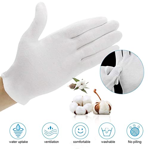 Confezione include:2 paia di guanti in cotone bianco, Sufficienti per un uso prolungato. Puoi usare questi guanti di cotone come guanti idratanti, guanti da servizio, fodere per guanti o guanti da costume bianchi.