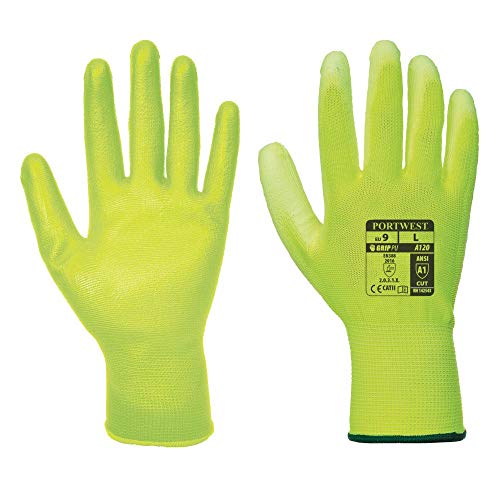 12 Paio Di Guanti Da Lavoro Guanti PU Assembly Guanti meccanico Nylon Portwest nero, bianco, grigio - Misura 7 8 9 10 11 - Nero, 7 / S