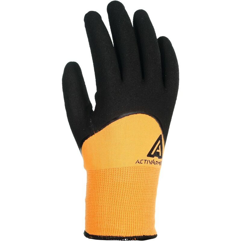 Dati tecnici EN 511 010 Rivestimento Nitril Materiale supporto Poliestere acrile Colore nero / arancione EN 388 4132A Tipo di prodotto Guanti di protezione dal freddo Tecnologia di lavorazione a maglia 10G Categoria di protezione antitaglio A Lunghezza mm 240 Peso g 72.1 Contenuto 6 Utilizzo riutilizzabile Variante del rivestimento Rivestimento a 3/4 Materiale Nitrile Serie ActivArmr® Categoria di protezione Categoria II Tipo di guanto Guanti di protezione dal freddo Misure guanti da lavoro 11