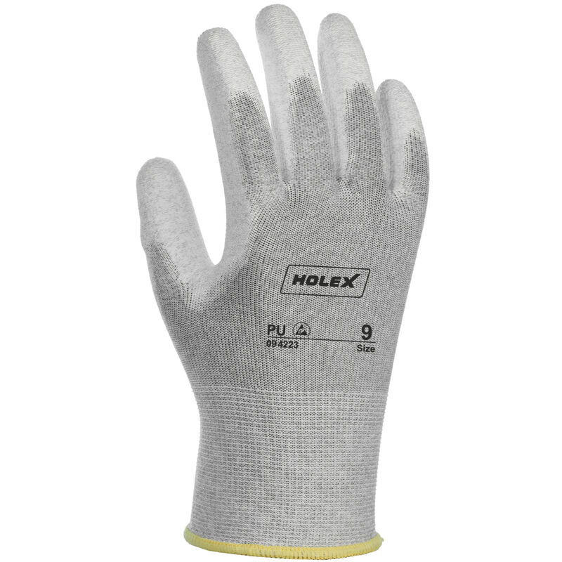 Guanto particolarmente sensibile per la protezione contro le cariche elettrostatiche (ESD). Ottima mobilità delle dita grazie al materiale di supporto flessibile. Particolarmente adatto per il montaggio di componenti elettronici, schede, cavi e fili. Rivestito per garantire una migliore presa e un'elevata resistenza all'abrasione. Norma: EN 388;