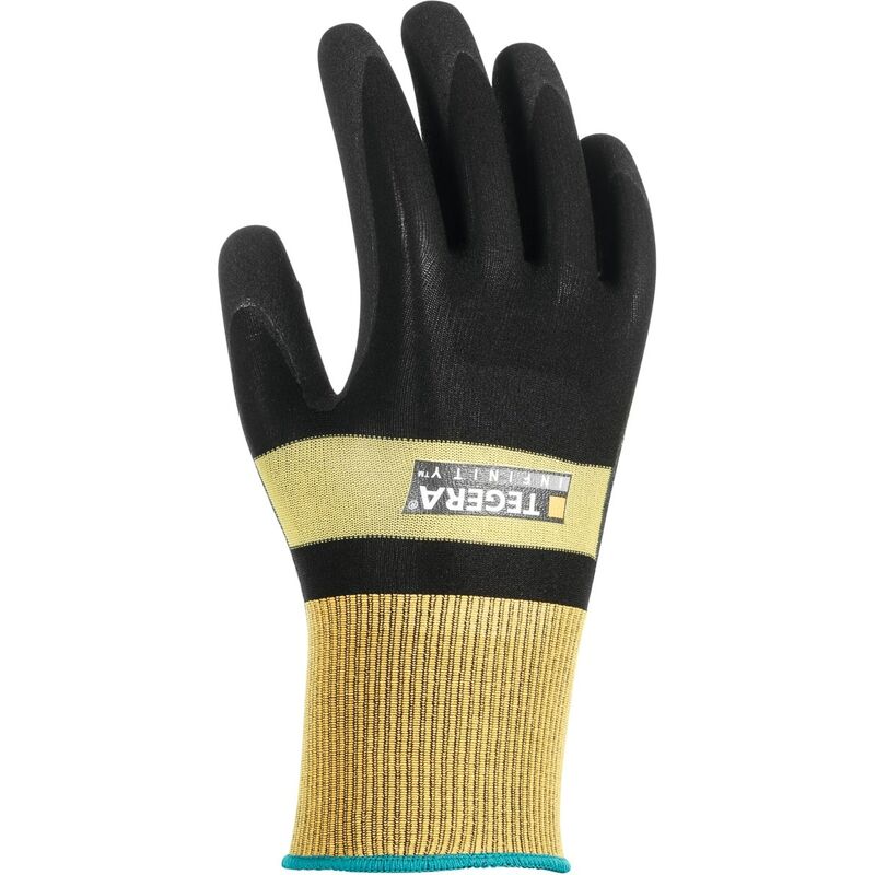 Guanto multiuso della nuova serie Infinity, dotato di una straordinaria sensibilità tattile e di un'ottima presa. Con palmo resistente a oli e grassi. Resistente al contatto con calore fino a 100 °C. Tegera® 8802 Infinity. Robusto guanto per il montaggio con doppio rivestimento a tenuta in nitrile e schiuma di nitrile con PU a base d'acqua, adatto per aree di lavoro poco oleose e umide. Norma: EN 407 EN 388;