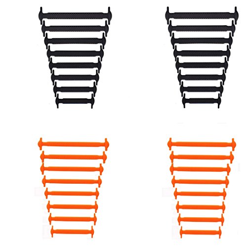 Paio di Lacci Elastici Da Scarpe Sportive In Silicone, Lacci per Scarpe per Bambini e Adulti Unisex, Multicolore (Nero + Arancione)