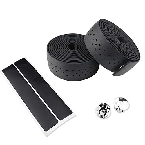 1 paio di nastri per manubrio della bicicletta, antiscivolo, in pelle PU, per manubrio della bicicletta, con tappi per estremità della barra