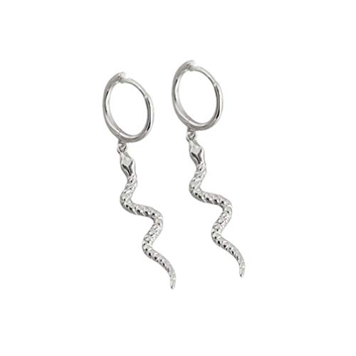 1 paio di orecchini a cerchio a forma di serpente in argento Sterling 925, per donne e donne (oro bianco), M, Argento sterling
