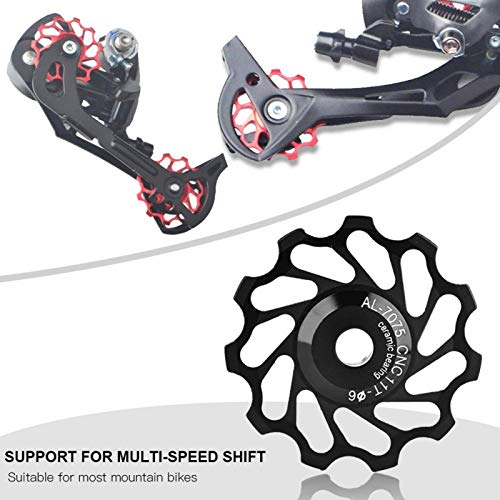 1 paio di puleggia del deragliatore posteriore della bici, puleggia della ruota della guida della bicicletta, ruota del fantino per parti di ricambio per biciclette da strada(13T-nero)