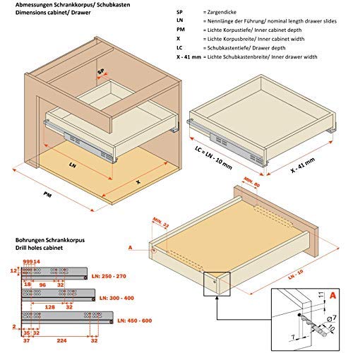 Salice FUTURA Estrazioni completi per cassetti di legno con una lunghezza di 400 mm