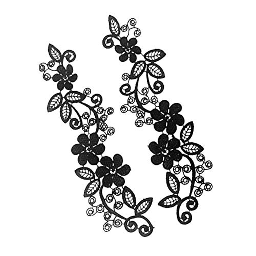 U-K 1 paio di toppe con motivi in tessuto di pizzo floreale con applique in pizzo ricamato - nero, L30cm Nice Design