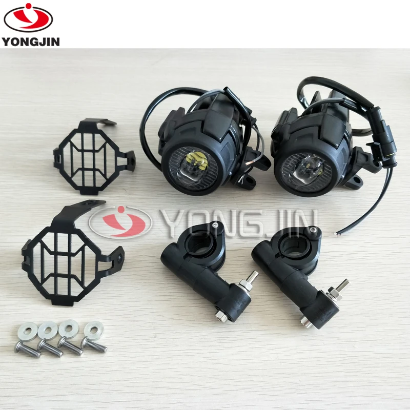 Pair 40W LED Auxiliary Spot Driving Light with Protective Guard for Motorcycle R1200GS F800GS K1600