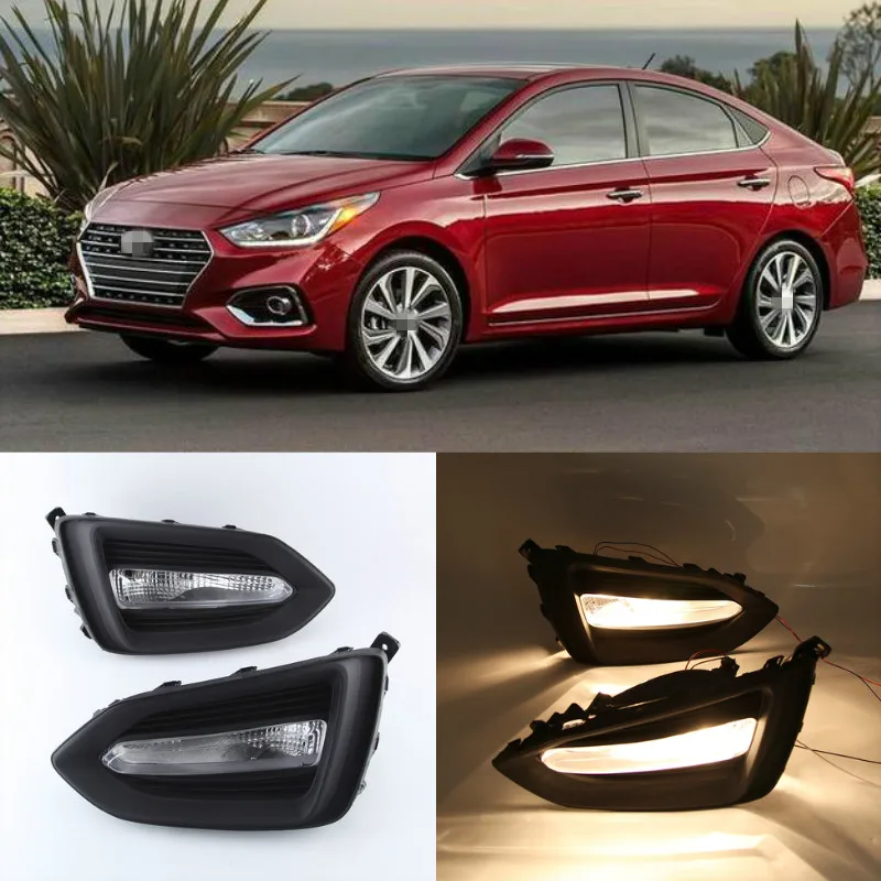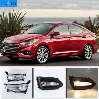 1 Pair Car DRL Lamp Waterproof LED Daytime Running Light Fog lamp cover For Hyundai Solaris Accent 2017 2018 2019