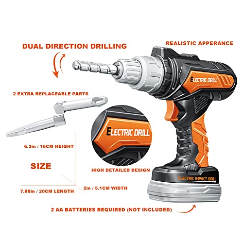 Taladro Giocattolo: Il taladro funziona con 2 batterie AA (non incluse) ed è dotato di una funzione di direzione di perforazione doppia. (Il taladro giocattolo funziona con 2 batterie AA, non incluse, e ha una doppia direzione di perforazione.)