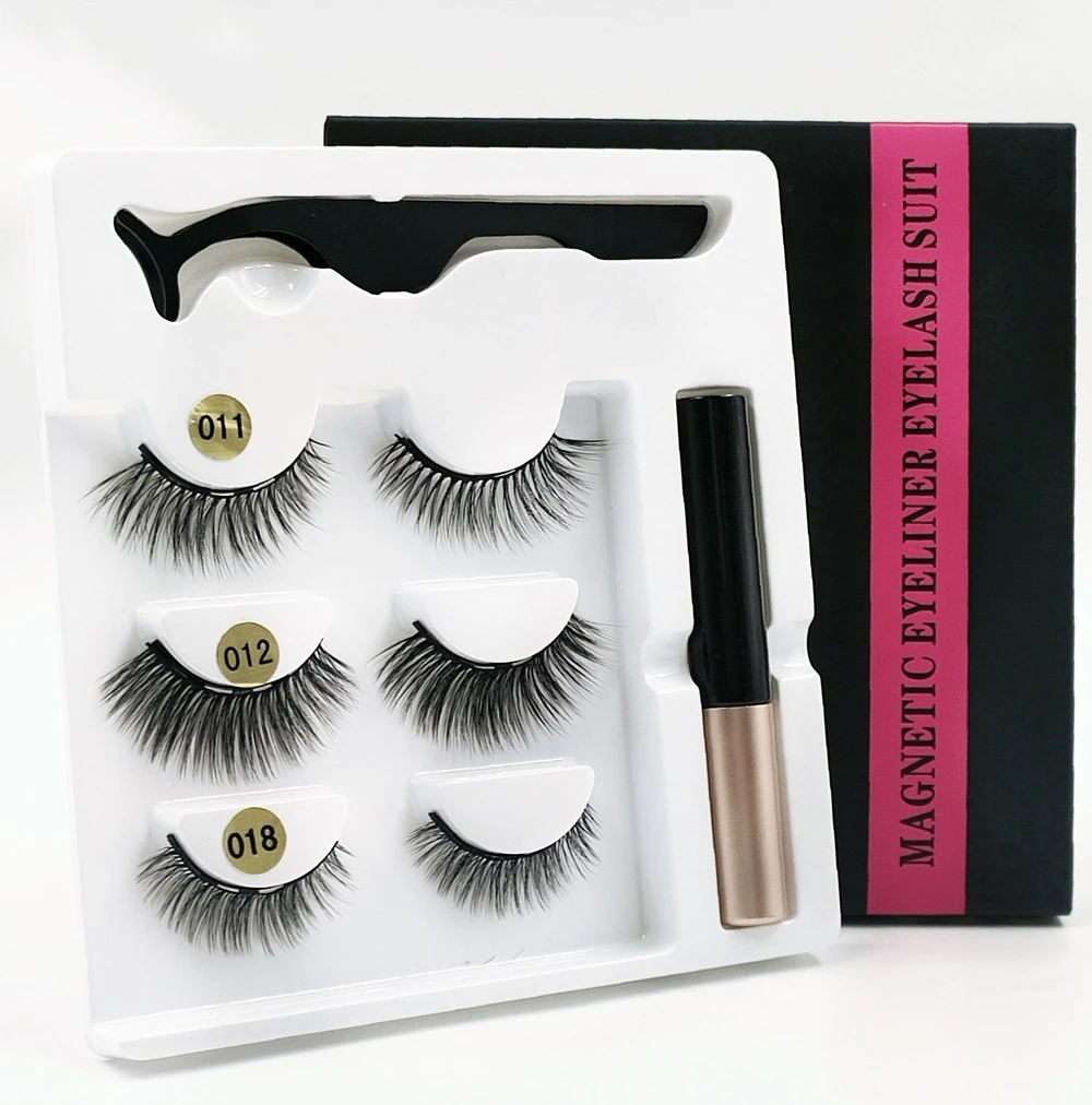 3 Pairs Magnetic Eyelash set Magnet Liquid Eyeliner & Magnetic Lashes and Tweezer Set Beauty Makeup lashes Extension