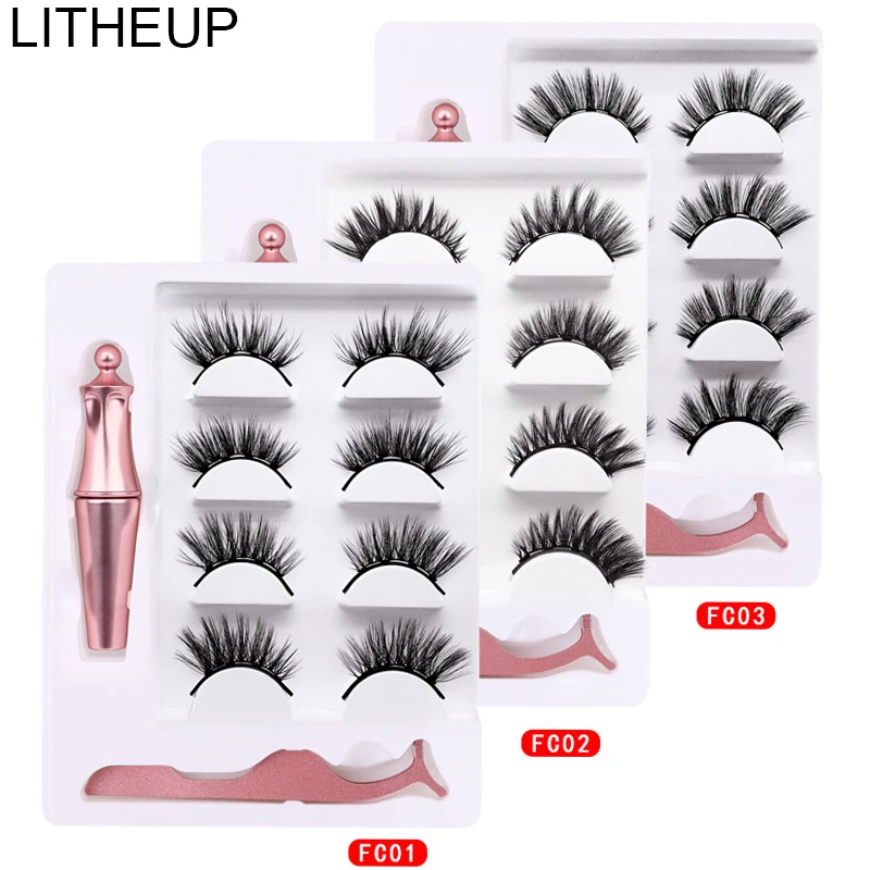 4 pairs Magnetic Eyelashes Eyeliner Eyelash Curler Set Natural Long Magnetic False Eyelashes With Magnetic Eyeliner Tweezers Set