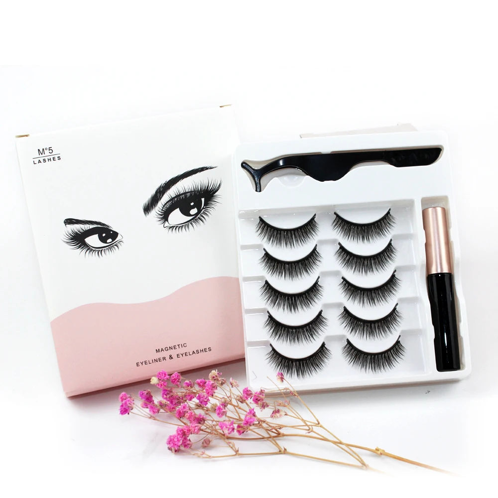 5 pairs 3D Magnetic Eyelashes False Eyelashes With Magnetic Eyeliner Natural Long Waterproof Liquid Long Lasting lash