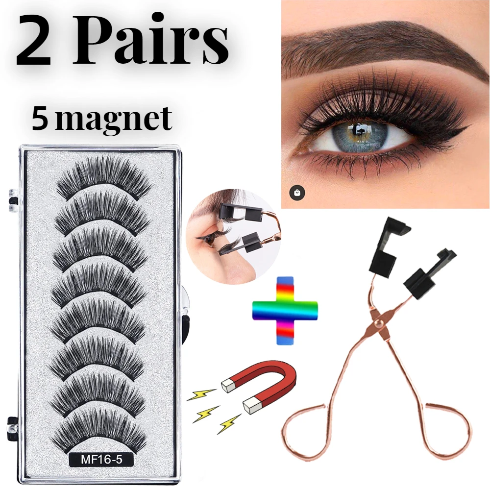 2 pairs of magnetic eyelashes 3D natural magnet lashes handmade reusable magnetic false eyelashes with magnet eyelashes tweezers