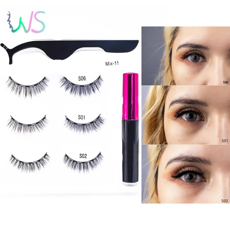 3 Pairs 3D Mink Magnetic Eyelashes Set Liquid Magnet Eyeliner Lash with Tweezers Kit Long Lasting Waterproof Beauty Makeup Tools